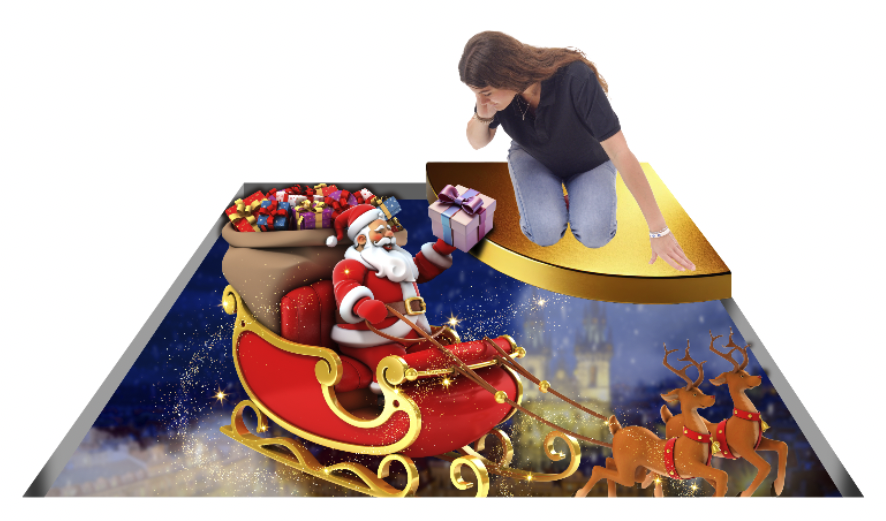 「絵本から飛び出してくるそりに乗って、絵本から脱出したサンタとプレゼントを配達しよう!」