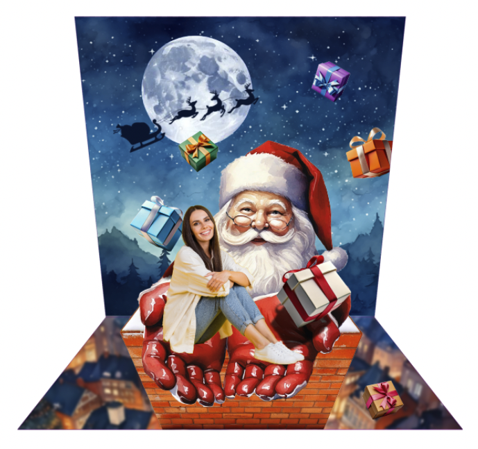 「巨大なサンタクロースが煙突から登場!プレゼントを手渡してくれる、クリスマスならではの作品です」