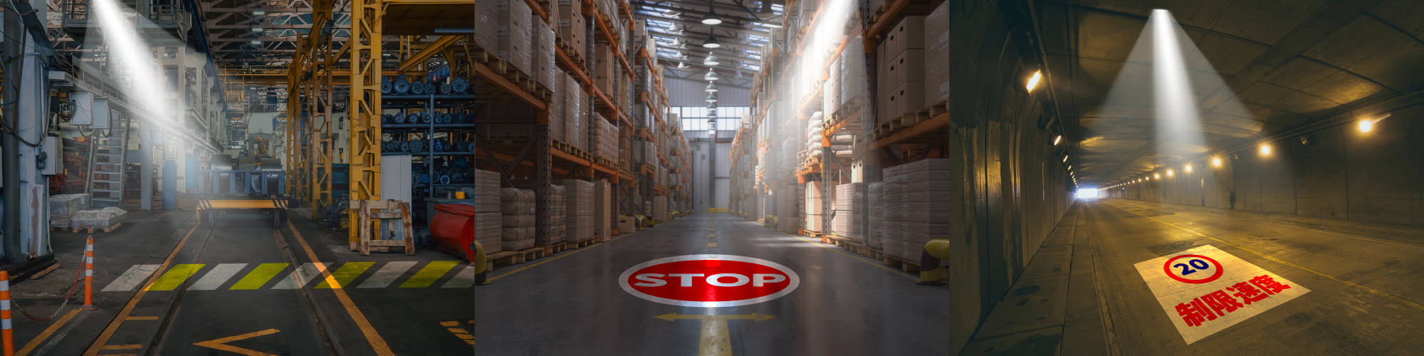 また、暗い場所でもはっきりと視認でき、印刷サインでは難しい“動的な安全表示”を実現します。