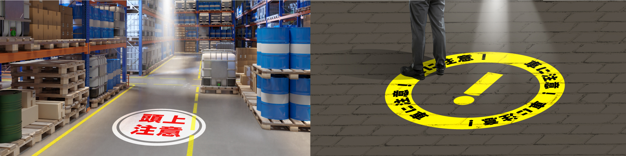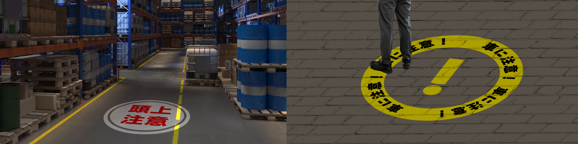 - フォークリフト通路:動く「Forklift Crossing」マークで注意喚起