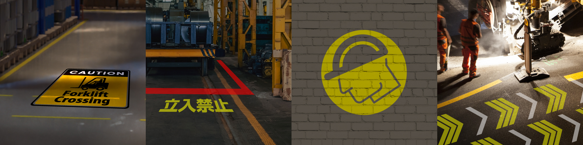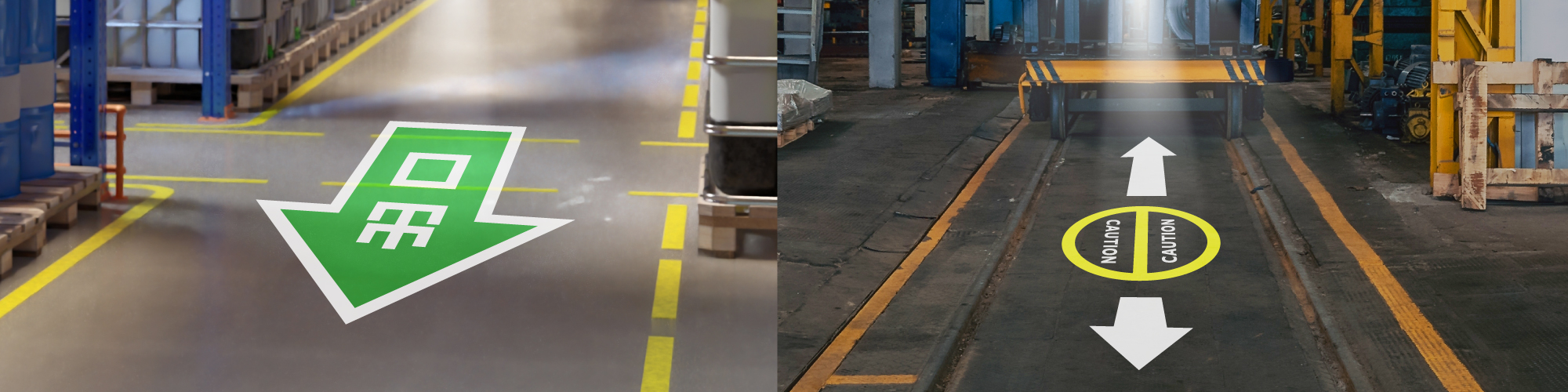動く光で注意を引く ― プロジェクションライト安全サイン」