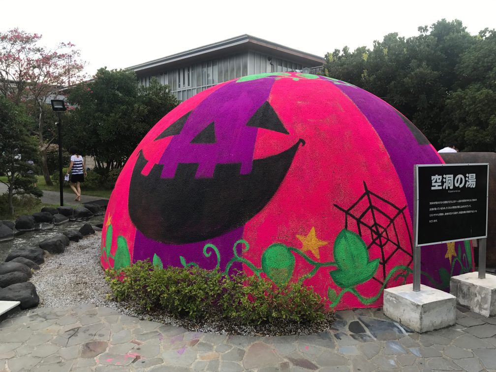 大江戸温泉浦安万華郷 ハロウィン仕様の装飾制作 ハロウィンにちなみ、空洞風呂というお風呂の外観をお化けかぼちゃの装飾をいたしました。 ピンクのかぼちゃはフォトジェニックなお写真が撮れること請け合いです。 水着でお風呂に入れるゾーンにあるので、若い女性客や親子連れには人気のフォトスポットになっています。 Before After